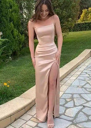 This elegant mermaid-style evening dress features sleeveless straps and a long, flowing silhouette, perfect for formal occasions and prom nights. Its simple yet sophisticated design enhances your figure while providing comfort and style. Ideal for making a graceful statement at any special event.