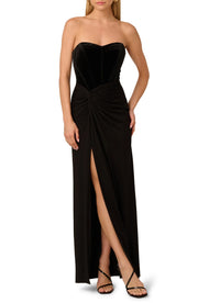 This sophisticated dress features a sheath silhouette, hugging the body gracefully for a polished and refined look. The strapless design adds a touch of chic allure. With a sleeveless cut, it keeps you cool and stylish. The zipper back detail ensures a secure and seamless fit, and the floor length skirt makes for a truly sophisticated and unforgettable appearance, perfect for evening events.