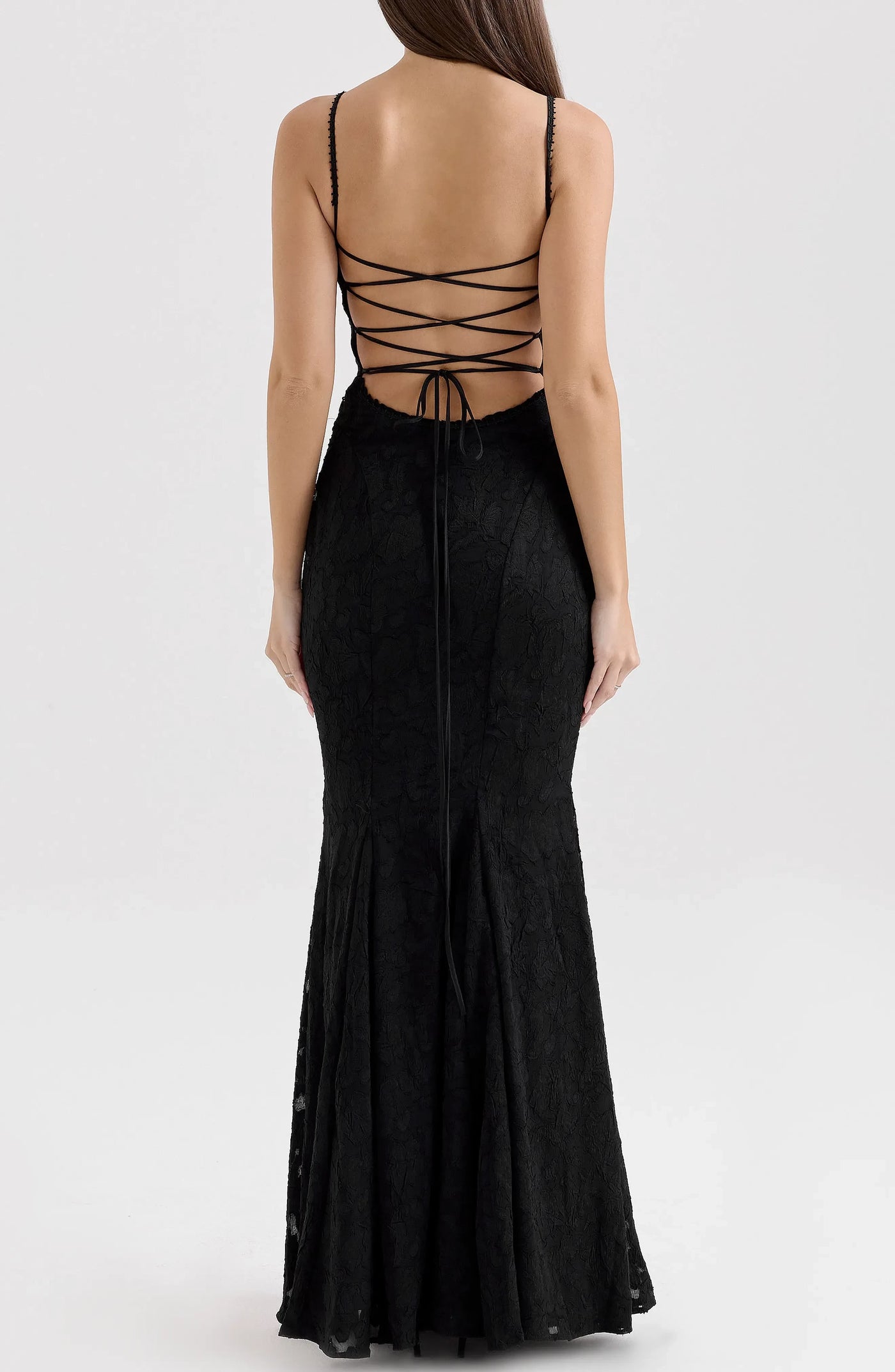 This spellbinding dress features a mermaid silhouette, hugging the body to highlight curves and flaring out at the bottom for a dramatic effect. The sweetheart neck design brings a romantic and alluring charm. With a sleeveless cut, it adds a touch of elegance. The lace up back detail creates a daring and stylish look, and the floor length skirt, along with the lace texture, makes for a truly spellbinding and unforgettable appearance, perfect for evening events.