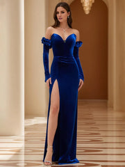 Strapless Sleeveless Column Evening Dresses with Ruffles Rhinestone High Split
