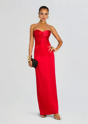 This evening dress features a sheath silhouette that offers a sleek and figure-hugging fit. The strapless design brings a stunning and captivating touch, while the sleeveless style provides a chic and effortless look. The knot-front accents add elements of elegant charm, enhancing the dress’s overall appeal. With a floor-length design, it’s ideal for evening events, ensuring the wearer looks stunning and confident.