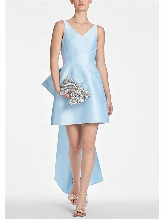 Blue Princess V-Neck Mini Sleeveless with Bow Cocktail Dresses Party Dresses Homecoming Dresses