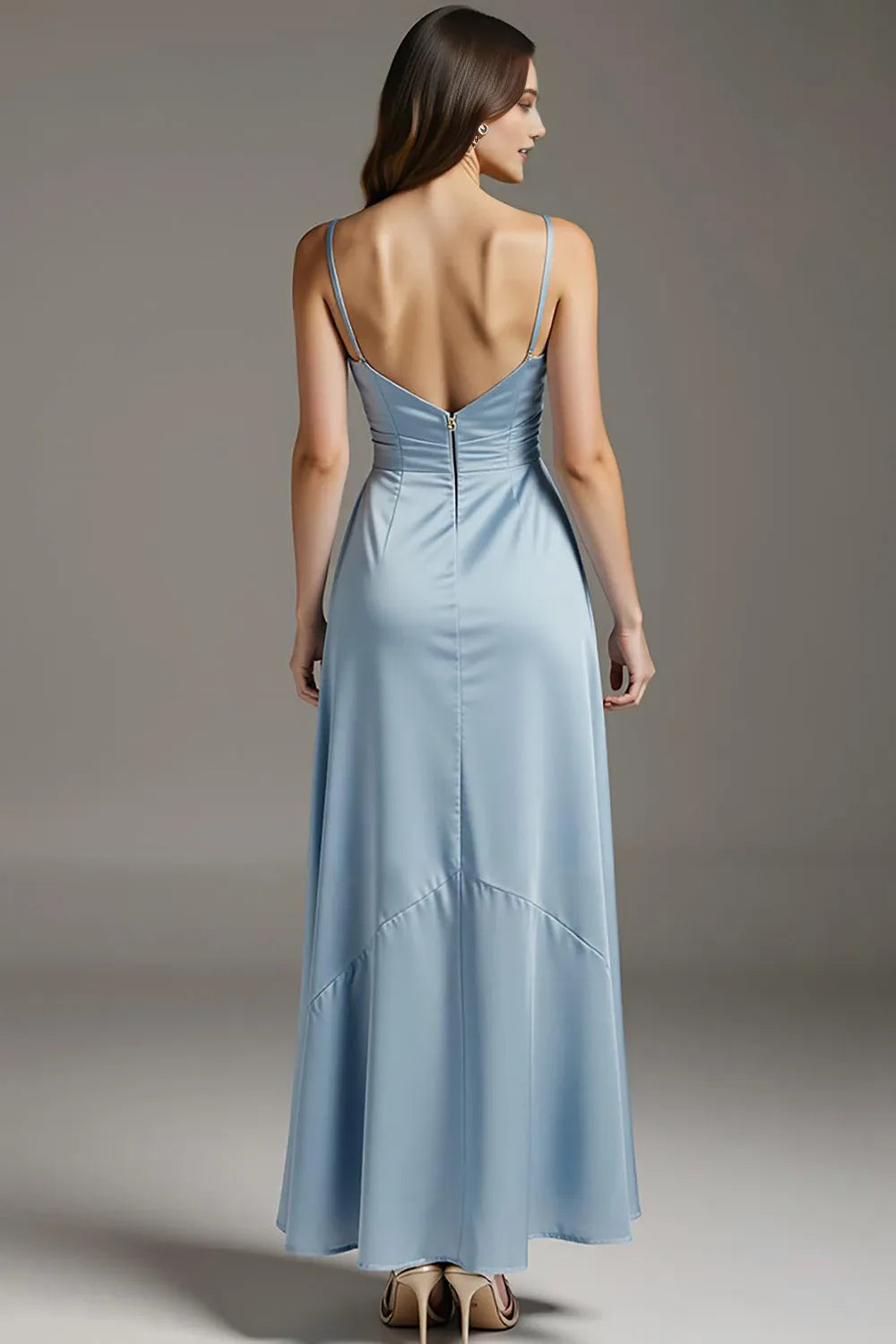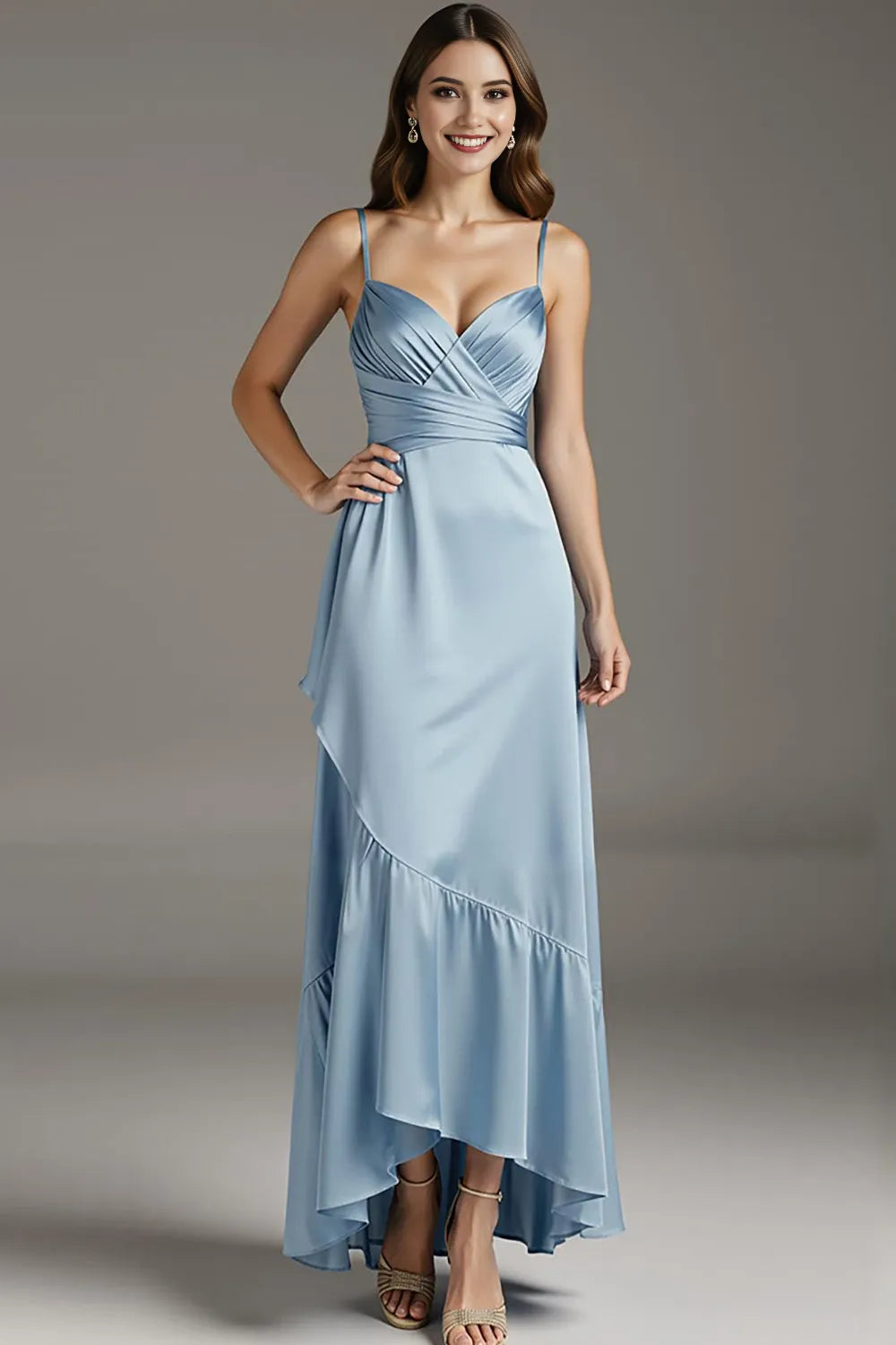 Step into chic style with this A line dress. It features a sweetheart neck for a romantic look, delicate spaghetti straps for a feminine touch, and an open back that adds allure. The high low length makes it perfect for evening occasions, ensuring you look stylish and elegant.