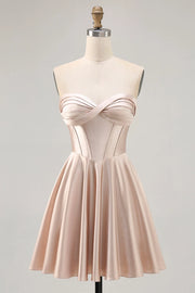 Chic Fit and Flare Strapless Lace Up Back Mini Party Dress Homecoming Dress
