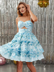Chiffon Ball Gown Spaghetti Straps sleeveless Short with Ruffles Party Dresses Homecoming Dress
