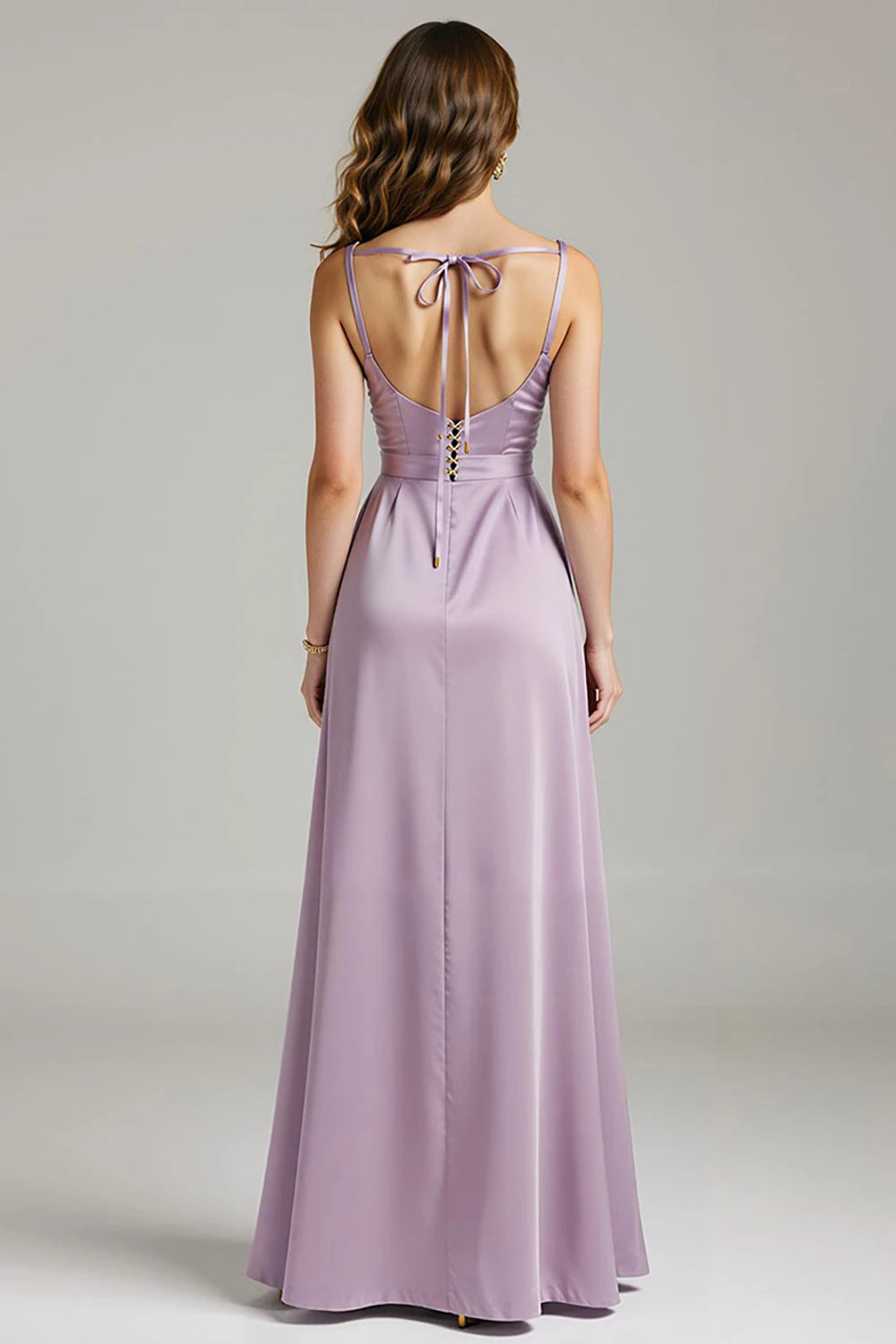 Step into elegance with this A line dress. It features a square neck for a classic and refined look, delicate spaghetti straps for a feminine touch, and a tie back that adds a sweet detail. The maxi length makes it perfect for evening occasions, ensuring you look graceful and stylish.