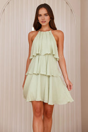 This dress is elegant and flowy. It has a halter neck design that gives a chic and sophisticated look, highlighting the neck and shoulders. The tiered ruffle layers create a beautiful, cascading effect, adding a feminine and playful touch. As a mini dress, it's perfect for parties, allowing you to move freely and embrace a light, airy style. Whether you're attending a summer soiree or a special celebration, this dress will make you look graceful and stylish.
