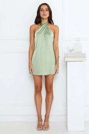 This dress is elegant and luxurious. Crafted from satin, it has a smooth and shiny texture that exudes sophistication. The halter neck design beautifully highlights the neck and shoulders, adding a touch of allure. The open back with a tie detail is both chic and captivating, making the dress stand out. As a mini dress, it's perfect for parties, allowing you to move freely and showcase your style. Whether it's a cocktail party or a special celebration, this dress will make you look glamorous and confident.