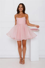 Elegant Square Neck Spaghetti Strap Bow Back Mini Party Dress Homecoming Dress