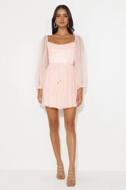 Dress is elegant and dreamy. It has a square neckline that gives a classic and refined look, beautifully highlighting the collarbone. The long tulle sleeves add a touch of sophistication and a whimsical feel. The open back design is stylish and alluring, making the dress stand out. As a mini dress with a tulle skirt, it's perfect for parties, allowing you to move freely and embrace a romantic, feminine style. Whether you're attending a wedding or a fancy celebration, this dress will make you look charming and elegant.