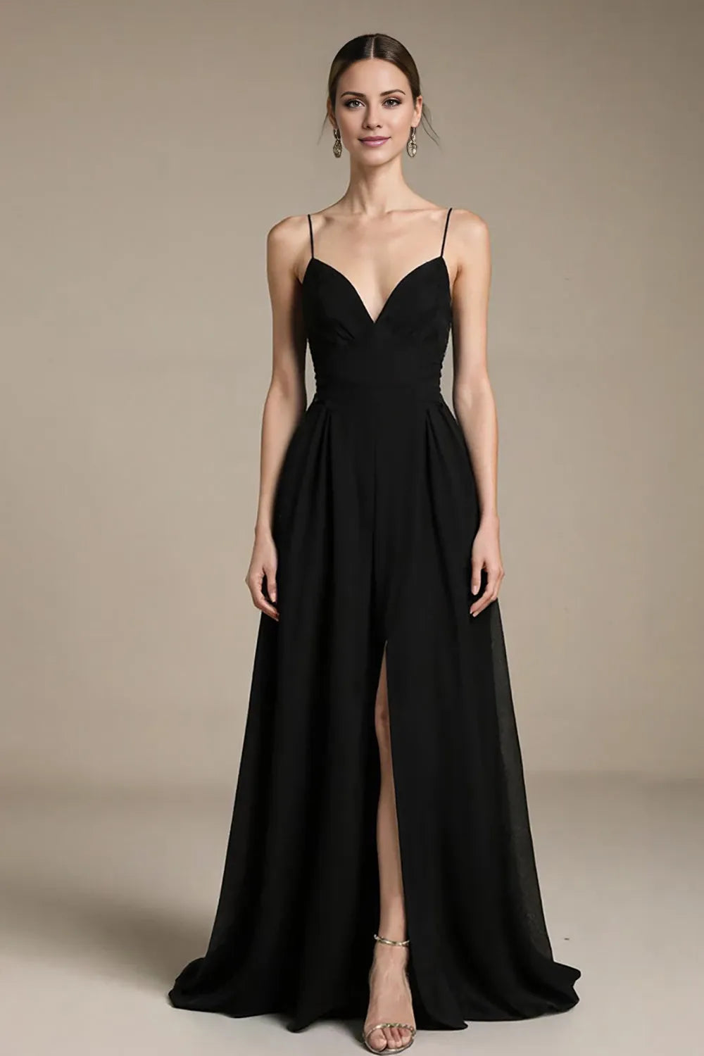 Step into glamour with this A line dress. It boasts a deep V neck for an alluring look, delicate spaghetti straps for a feminine touch, and an open - back that adds charm. The maxi length is perfect for evening occasions, ensuring you look stunning and sophisticated.