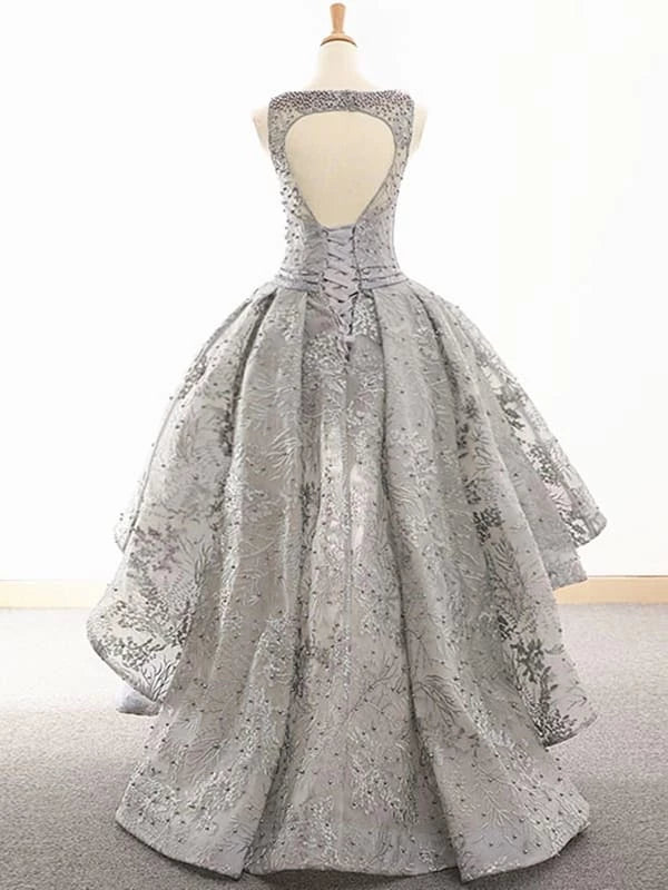 Elevate your formal occasions with this Gray Lace High Low Dress, expertly designed for prom, graduation, and homecoming events. The high-low hemline adds a modern silhouette, while intricate lace detailing offers timeless elegance. Crafted to provide both style and comfort, this dress ensures you stand out with sophistication at any special event.