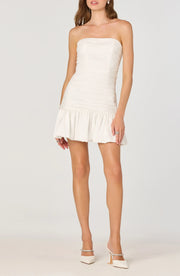 This homecoming dress features a modern bodycon silhouette that contours the figure beautifully. It comes with a strapless neckline and is sleeveless, highlighting the graceful collarbone and arm lines. The ruched back design adds texture and a fashion-forward touch, while the short length with a ruffled hem brings a playful and dynamic vibe. It's a standout choice for homecoming events, allowing you to showcase a confident and contemporary style with ease.