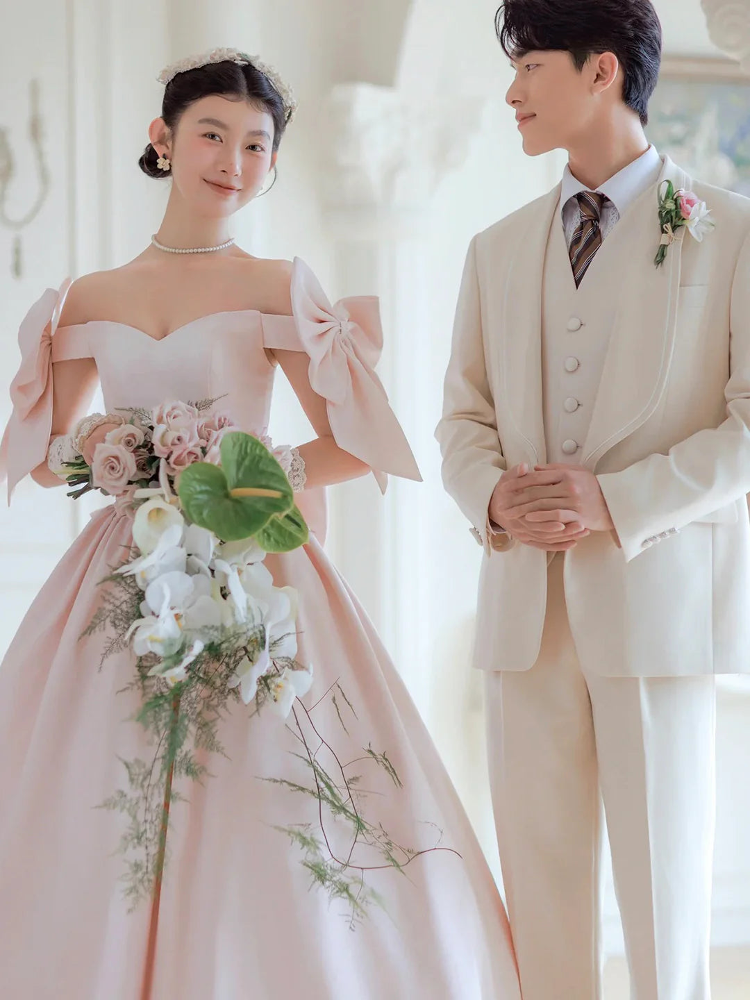 This pink off-the-shoulder prom dress combines elegance and charm with its lovely satin fabric and flattering tea-length cut. Featuring delicate bows that add a touch of sweetness, it’s perfect for evening parties, homecoming, or any special occasion where you want to stand out gracefully. The off-shoulder design highlights your neckline, making it a stunning choice for memorable moments.