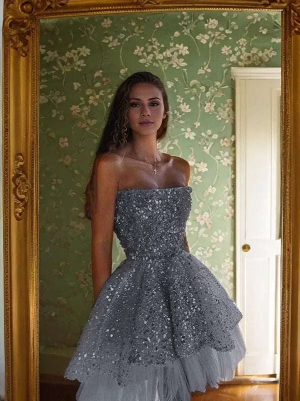 Princess Ruffles sequin Strapless Sleeveless Short Dresses Party Dresses Evening Dresses Homecoming Dresses