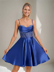 Princess Spaghetti Straps Sleeveless Pleated Mini with Rhinestones Lace-Up Party Dresses Homecoming Dresses