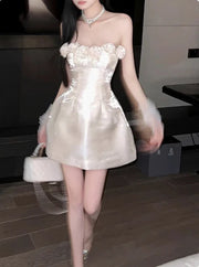 Embrace timeless elegance with this Retro Beige Sequin A-line dress, featuring a strapless design and intricate 3D floral embellishments. Perfect for prom, cocktail parties, homecoming, or evening events, its flattering silhouette ensures comfort and style throughout the night. The shimmering sequins add subtle glamour while the detailed floral accents create a standout look tailored for special occasions.