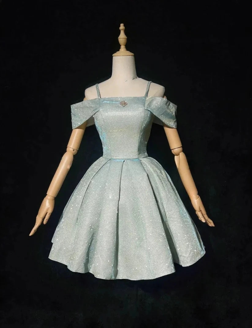 Sparkling Light Blue Sequin Spaghetti Strap Design A-line Satin Prom Dress Party Dress Cocktail Dress Homecoming Dress Evening Dress - US 2 / UK 6 / EU 32