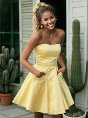 Strapless Sleeveless Satin Ruffles Short Homecoming Dresses