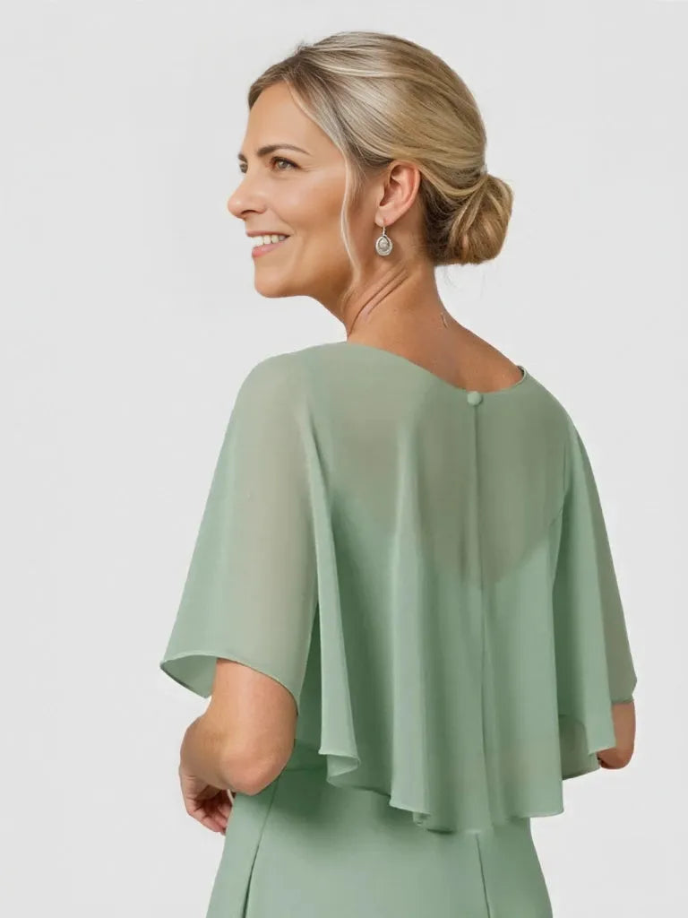A-Line Scoop V-Neck Half Sleeves Floor-Length Chiffon Mother of the Bride Dresses