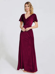 Chic Sheath V Neck Flutter Sleeve Open Back Floor Length Mother of the Bride Dress