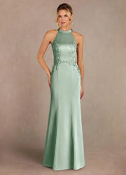 Chic Trumpet Halter Neck Sleeveless Zip Back Floor Length Mother of the Bride Dress