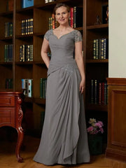Chiffon Applique Sweetheart Princess Short Sleeves Floor-Length Mother of the Bride Dresses