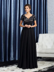 Chiffon V-neck Short Sleeves A-Line Floor-Length With Lace Mother of the Bride Dresses