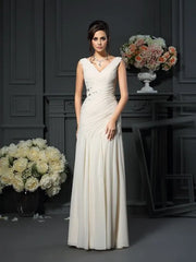 Chiffon V-neck Sleeveless Floor-Length Sheath With Beading Mother of the Bride Dresses