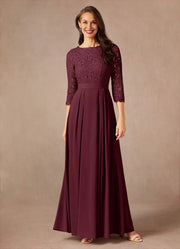 Elegant A Line Crew Neck Three Quarter Sleeve Zipper Back Floor Length Mother of the Bride Dresses