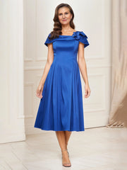 Elegant A Line Off Shoulder Cap Sleeve Zipper Back Midi Length Mother of the Bride Dress