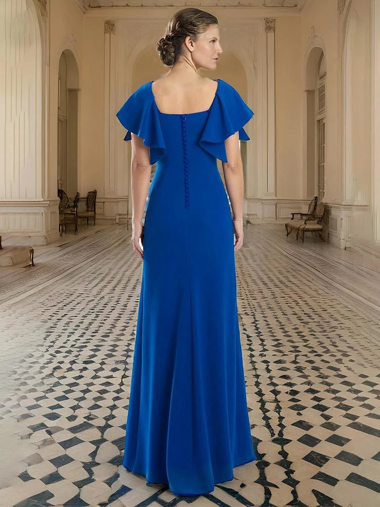 Elegant A Line Square Neck Ruffle Sleeve Button Back Floor Length Mother of the Bride Dress