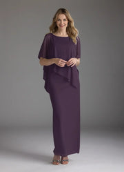 Elegant Sheath Boat Neck Cape Sleeve Zipper Back Floor Length Mother of the Bride Dress