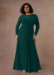 Elegant Trumpet Keyhole Neck Long Sleeve Zip Back Plus Size Floor Length Mother of the Bride Dress