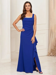 Glamorous Sheath Square Neck Sleeveless Zip Back Floor Length Mother of the Bride Dress