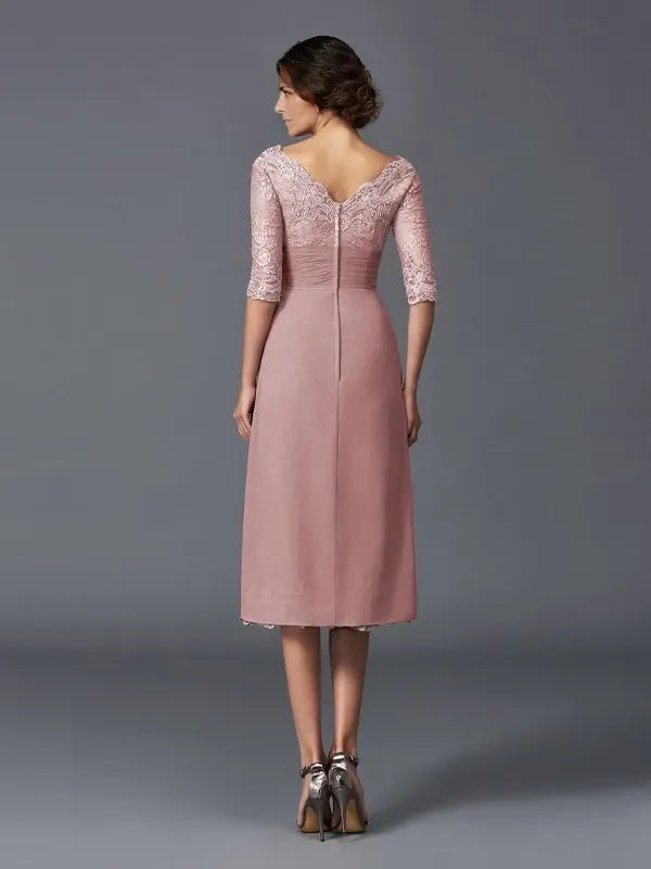 Lace V-neck Short Sleeves Tea-Length With Hand-Made Flower Mother of the Bride Dresses