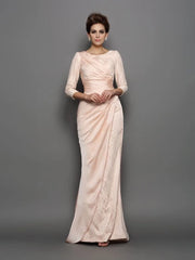 This elegant mother of the bride dress features a mermaid silhouette crafted from luxurious satin and chiffon, offering a graceful fit that enhances your figure. The bateau neckline and short sleeves provide a timeless, sophisticated look, while the delicate lace detailing adds refined texture. The sweep train adds subtle drama and ease of movement, making it perfect for formal occasions. Designed with expert tailoring, this dress combines comfort and style for a memorable celebration.