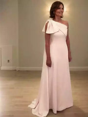 One-Shoulder A-Line Stretch Crepe Bowknot Sleeveless Sweep Train Mother of the Bride Dresses