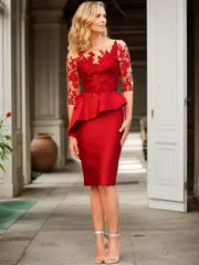 Satin Applique Scoop 3/4 Sleeves Knee-Length Sheath Mother of the Bride Dresses