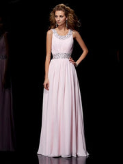 Scoop Sleeveless Chiffon Floor-Length With Beading Dresses