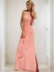 Sheath Chiffon Lace Scoop Sleeveless Floor-Length Mother of the Bride Dresses