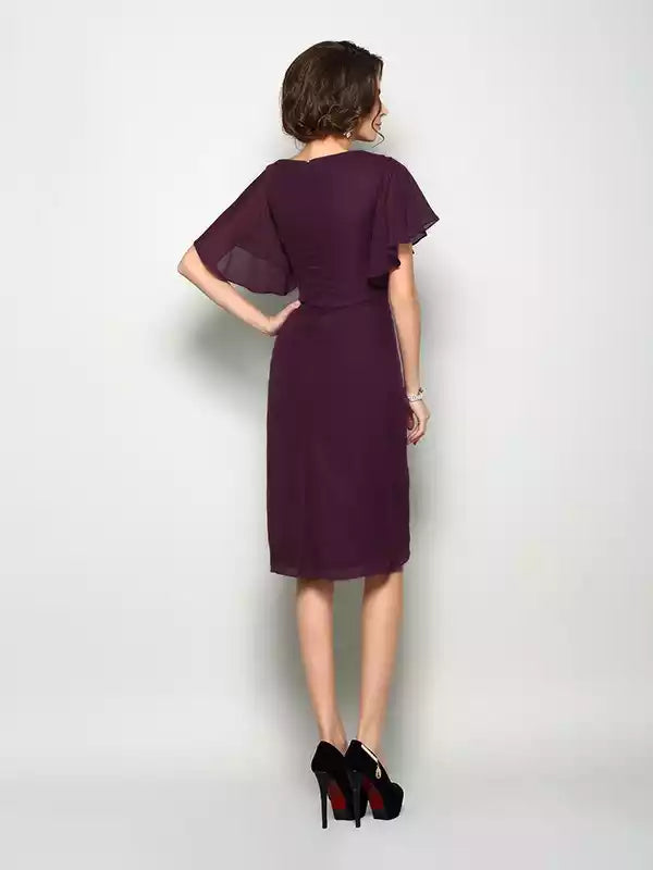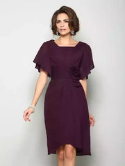 Short Sleeves Knee-Length A-Line Chiffon Square With Hand-Made Flower Mother of the Bride Dresses