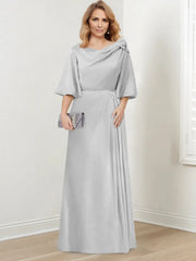 Simple A-Line Scoop Neck Long Sleeves Floor-Length with Ruffles Mother of the Bride Dresses