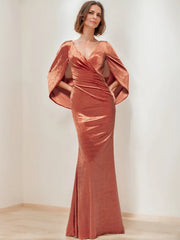 Tight Sheath V-Neck Half Sleeves Floor-Length Velvet with Ruffles Mother of the Bride Dresses