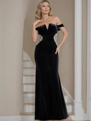 This elegant mother of the bride dress features a sophisticated sheath silhouette crafted from luxurious velvet. Its sleeveless design and flattering V-neckline create a timeless look, while the floor-length cut adds graceful formality. Delicate beaded appliques enhance the dress with subtle sparkle, making it an exquisite choice for formal occasions. Perfectly combining classic style with refined details, this gown offers both comfort and elegance for memorable celebrations.