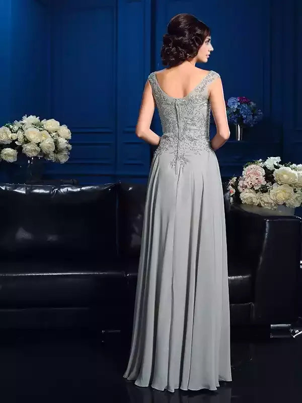 V-neck Sleeveless A-Line Chiffon Floor-Length With Beading Mother of the Bride Dresses