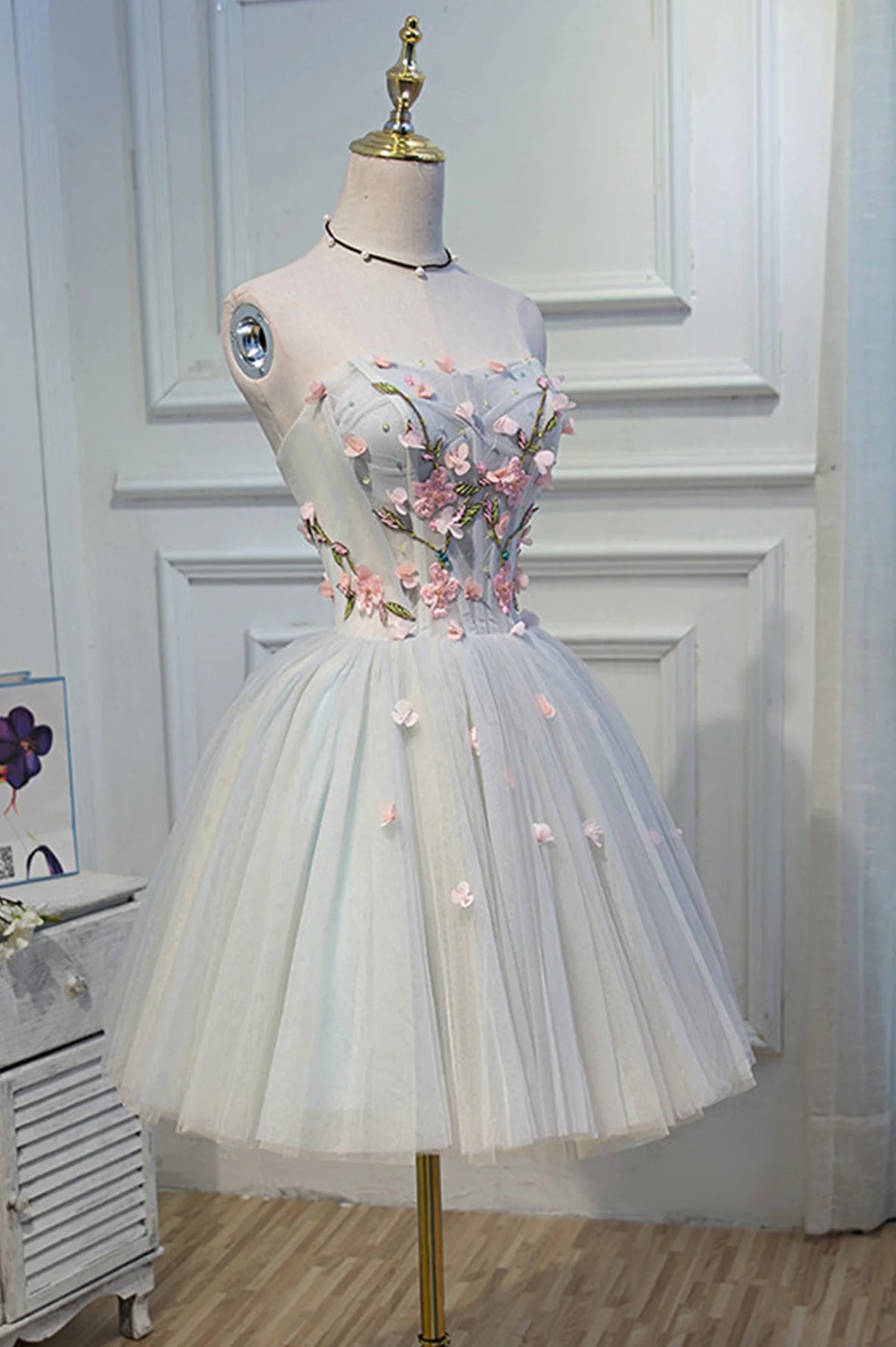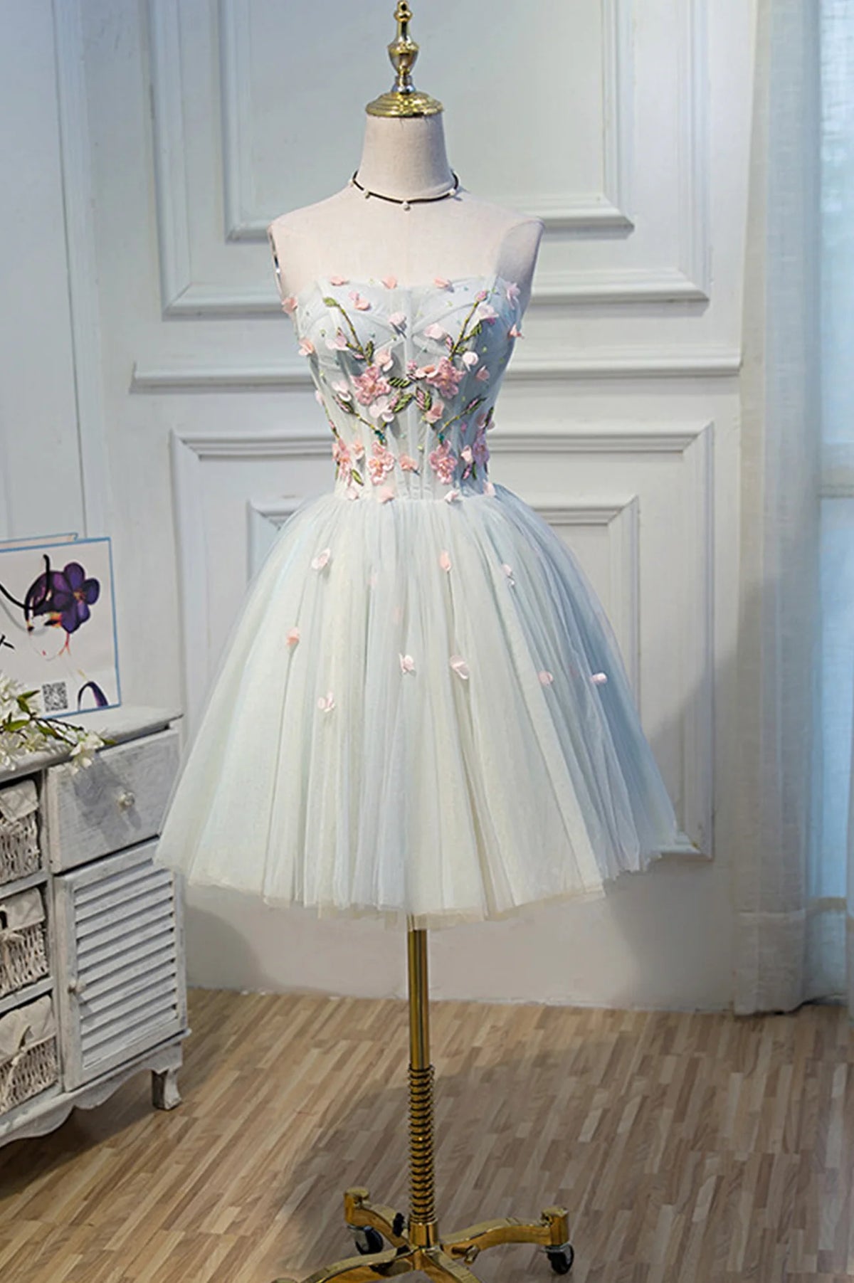 A-Line Lovely Strapless Tulle Lace Knee Length Prom Dress Party Dress