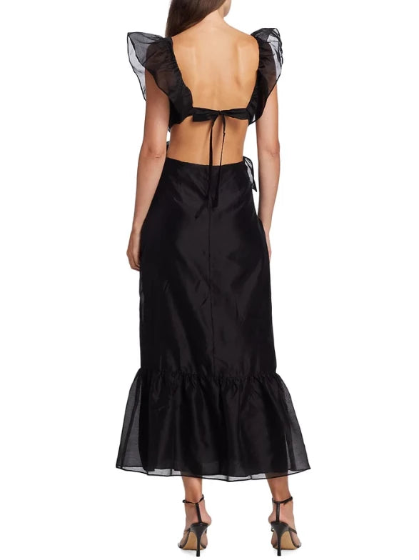 Black Ruffle Straps Backless Elegant Long Prom Dress Party Dress Cocktail Dress Homecoming Dress Evening Dress - US 2 / UK 6 / EU 32