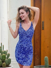 This elegant short dress features a sleek column silhouette with a V-neckline and sleeveless design, crafted from rich velvet fabric embellished with sequins. Perfect for parties, evening occasions, and homecoming events, it offers a sophisticated look that highlights your style while providing comfort and a flattering fit.