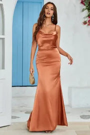 elegant floor-length party dress features a sophisticated cowl neck and sleeveless design,Backless, accentuating the shoulders with its off-the-shoulder style. Its mermaid silhouette flatters the figure, making it an ideal choice for formal events or special occasions. Crafted to provide both style and comfort, this dress offers a timeless look that ensures you stand out with grace and confidence.